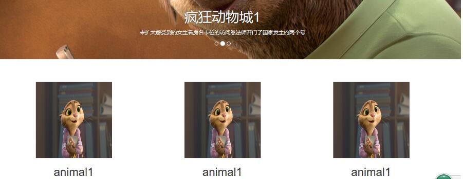 <div class="container" id="tag_container"> <div class="row"> <div class="col-md-4"> <img src="image/3.jpg" alt="animal1" width="200px" height="200px"> <h2>animal1</h2> <p>林卡酒店刚说风寒看到个后面发的搜房大机构老夫</p> <p><a href="#">click me</a></p> </div> <div class="col-md-4"> <img src="image/3.jpg" alt="animal1" width="200px" height="200px"> <h2>animal1</h2> <p>林卡酒店刚说风寒看到个后面发的搜房大机构老夫</p> <p><a href="#">click me</a></p> </div> <div class="col-md-4"> <img src="image/3.jpg" alt="animal1" width="200px" height="200px"> <h2>animal1</h2> <p>林卡酒店刚说风寒看到个后面发的搜房大机构老夫</p> <p><a href="#">click me</a></p> </div> </div> </div>