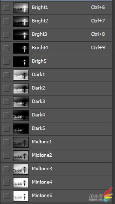 Photoshop会自动把我们选中的Bright3亮度蒙版创建出来。