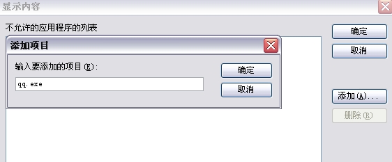 打开组策略编辑器,找到“用户配置”------“管理模块”------“系统”,在系统子选项下找到“不要运行指定的的windows应用程序”并双击---------在打开的选项中选择“已启用”,并点击“显示”------------接着“添加”并输入想要禁止的应用程序名(如QQ).确定就好了。