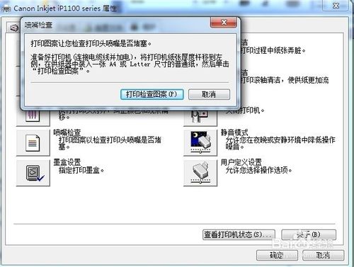 4、清理好以后就进行喷嘴检查。选择打印检查图案---确定。