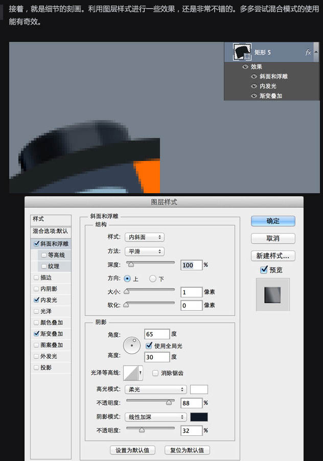5、接着,就是细节的刻画。利用图层样式进行一些效果,还是非常不错的。多多尝试混合模式的使用能有奇效。
