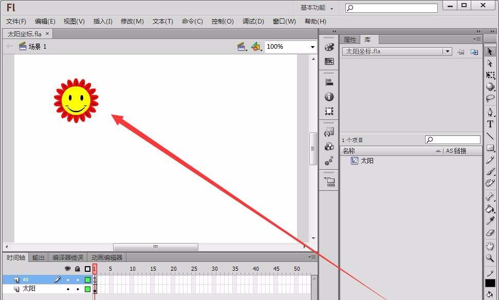 1、打开Flash软件,选择“ActionScript3.0”,新建一个“太阳坐标”的作品。
