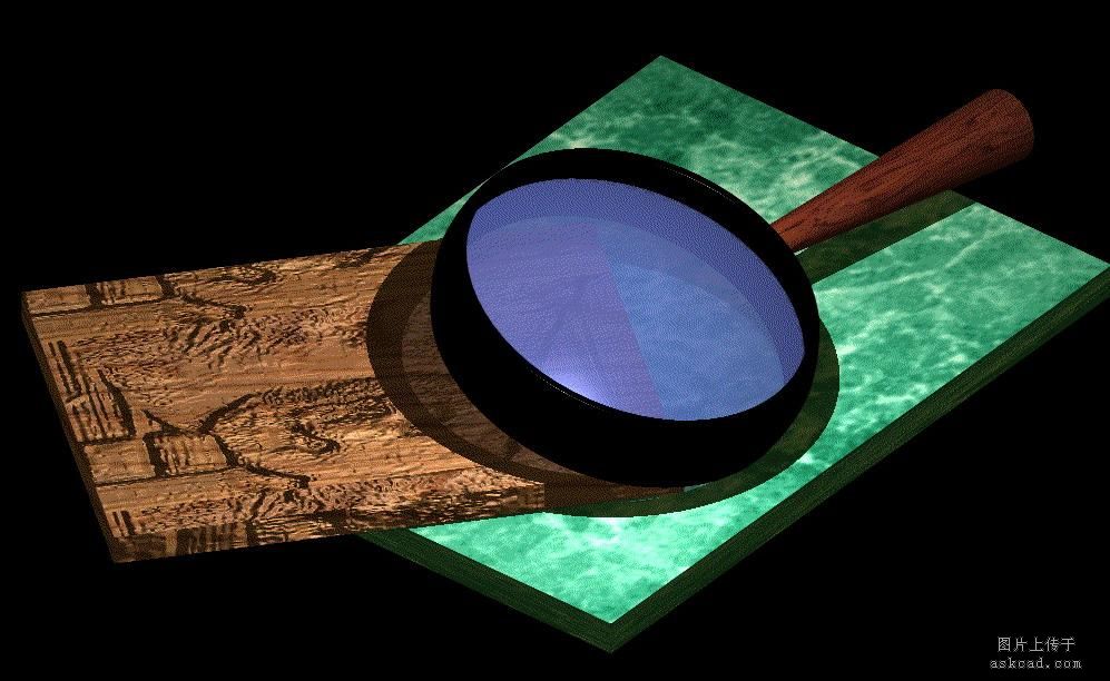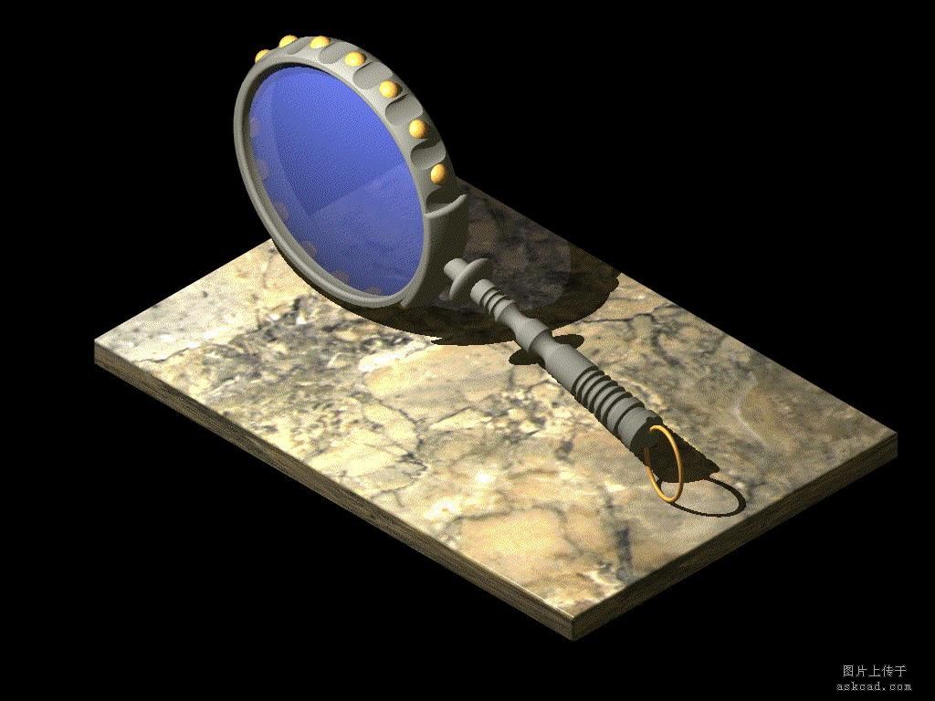 我这个放大镜制作比较简单,目的是给初学者演示一下画图的一般过程,为了让初学朋友尽快上手,我还是忽略了尺寸的要求,只求做得大体上象样就可以了,重要是对方法的理解。还是先看最后的结果图吧,初学的朋友切不要"惊讶"哦,你看了以后,相信会比这个做的更好!