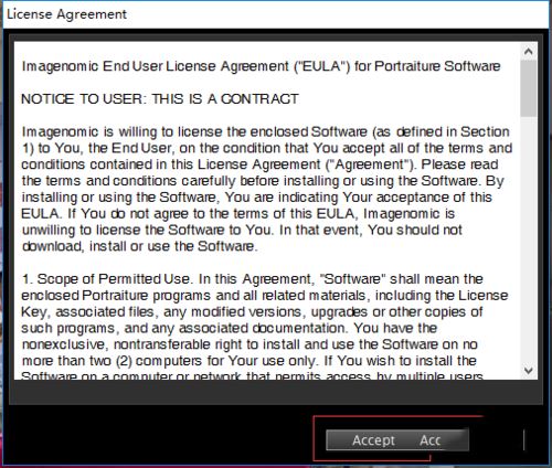单击选择滤镜,弹出滤镜须知,点击accept(接受),就弹出该滤镜设置的对话框了