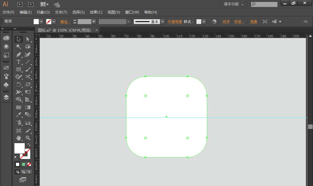1、打开AI软件,新建文档,选择【矩形工具】,绘制一个正方形图形,并将正方形的四个角拉成圆角形,填充白色,如图: