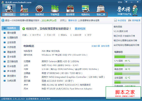 说到鲁大师这个软件,可以说是在电脑优化中基本上称的上是一个比较牛B的一款软件,不管在电脑速度方面优化及电脑数据的检测的准确度还是挺高的。而在硬件检测方法也是一流。所以说我们可以通过鲁大师这个软件对电脑硬件硬盘进行检测,如图所示: