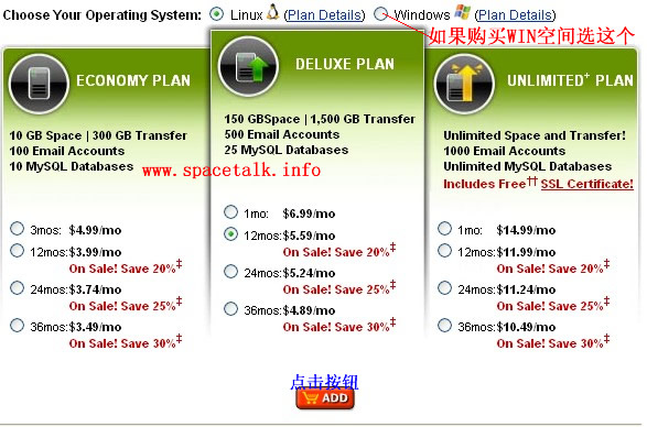 新页面中,根据你的需要,选择你要购买的空间类型。