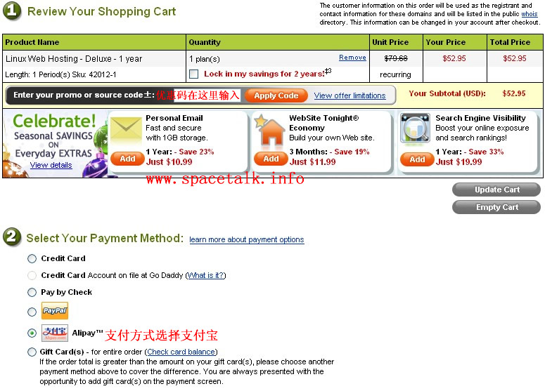 以上就是清秀手套最近收集整理的关于Godaddy 支付宝人民币支付购买空间的图解教程的全部内容,更多相关Godaddy内容请搜索靠谱客的其他文章。
