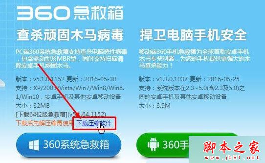 2、在“360系统急救箱”官网主页点击“360系统急救箱”;