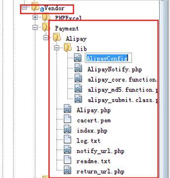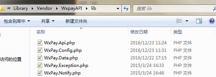 下载到微信平台提供的微信支付接口文件,放在了tp第三方类库vendor,命名为WxpayAPI