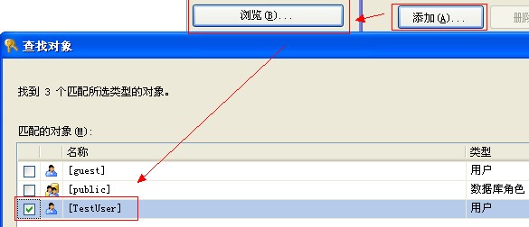 2. 在上面的第3步骤,设置完TestLog数据后,需要点击【确认】按钮,完成创建用户操作,如果这个时候去设置【安全对象】,是无法在【添加】-【特定对象】-【对象类型】-【登陆名】-【浏览】中找到刚刚新建的TestUser用户的。