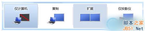 5、选择“扩展”,投影仪作为电脑的扩展屏幕,屏幕的右半部分会显示在投影仪上,此选择方便在投影的同时,电脑上可进行其他操作而不影响投影的内容,比如在演讲时可记录笔记;选择“仅计算机”表示关闭投影仪显示;选择“复制”,这样投影仪上的画面和电脑上的画面是同步的;选择“仅投影仪”,则关闭电脑显示,影像只显示在投影仪上;这里我们选择“仅投影仪”;