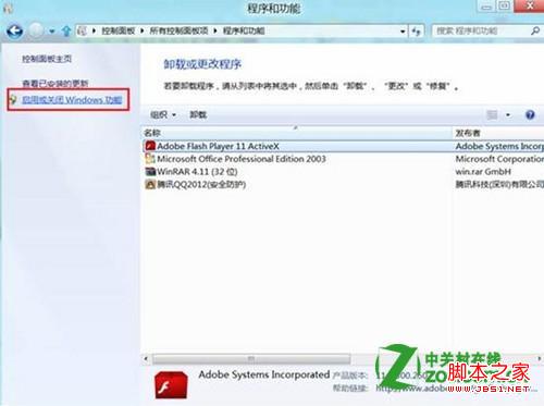3、在“程序和功能”下点击左侧的“启用或关闭 Windows 功能”。参见下图
