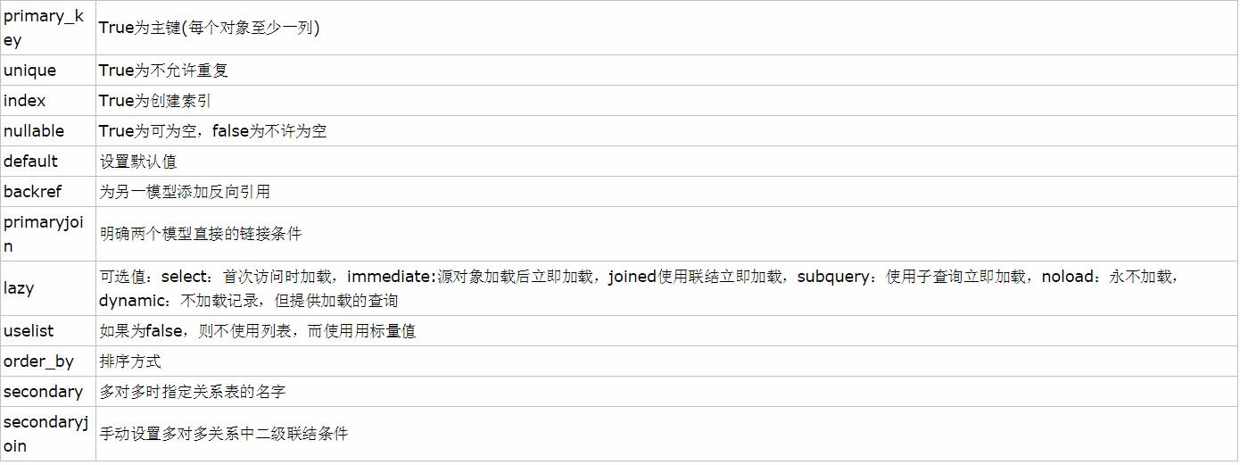 id=db.Column(db.Integer,primary_key=True) #SQLAlchemy要求必须有主键,一般命名为id即可