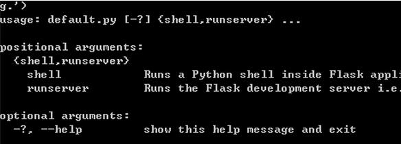 from flask.ext.script import Manager mamager=Manager(app) .... if __name__=='__main__': #app.run(debug=True) mamager.run()