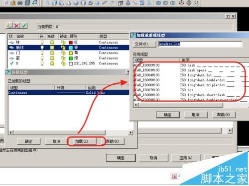 2、点击加载,这时出现加载或重载线型对话框。