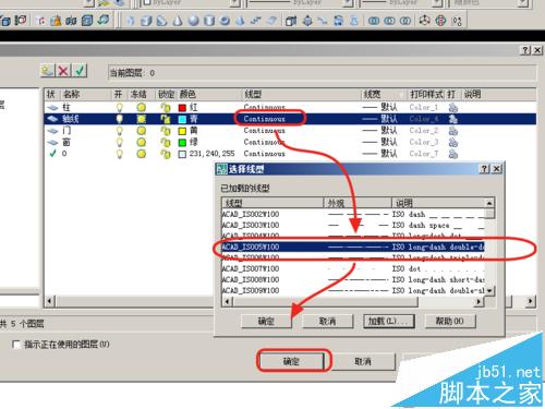 5、如图,轴线我们选择为点划线,其余选择为实现。当然颜色的设置也可以多样化。