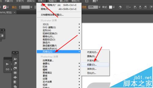 6、接下来选择图形到效果—风格化—投影,如图所示