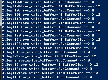 比如要搜索关键字write,则输入write回车之后,搜索到的结果如下(仅截取部分,这里由于隐私,日志文件是俺造的,只是数据量比较大,内容纯属虚构~~):