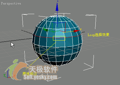 下方是四个加强选择功能的按钮。shrink和grow分别是收缩和扩张选择区域,具体效果如图41所示;ring为选中与当前边平行的所有边(如图42所示),此功能只能应用在边和边界层级中;loop为选中可以与当前选择的部分构成一个循环的子物体(如图43所示),此功能也只能应用在边和边界层级中。