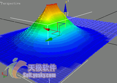 软选择可以将我们当前选择的子层级的作用范围向四周扩散,当变换的时候,离原选择集越近的地方受影响越强,越远的地方受影响越弱。如图44所示,被选中并移动的点为红色,作用力由红色到蓝色逐渐减弱,从这个图上大家能看到软选择的效果。打开软选择卷展栏(如图45所示)。