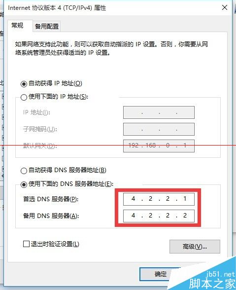 1、Win10正式版系统文件下载不完整将导致“自动更新失败”,对此我们需要重新配置一下电脑DNS,以实现快速更新操作。目前微软官方网站推荐的升级更新DNS服务器地址有:“4.2.2.1”和“4.2.2.2”。