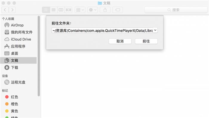 然后点击“前往”按钮,即可跳转 QuickTime 目录。这时候我们应该会看到一些自动保存的文件。那么,我们应该如何找到未保存的 QuickTime 文件呢?