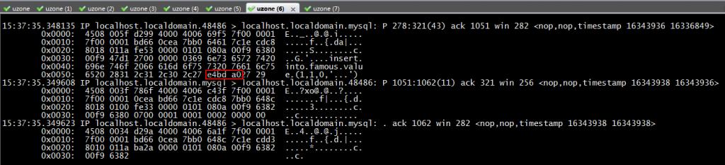 而是后面抓包看到的“c3a4 c2bd c2a0”(6个字节),mysql服务器将utf8的c3a4转换为latin1的0xe4,c2bd转换为0xbd, c2a0转换为0xa0