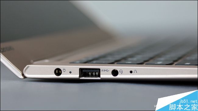 当然,超薄的机身也并非没有缺点,那就是让ideapad 710S没有空间去安置更多的接口。由于ideapad 710S采用了机身采用了楔形设计,从后往前越来越薄,所以能容纳接口的只有靠近转轴的部分区域。