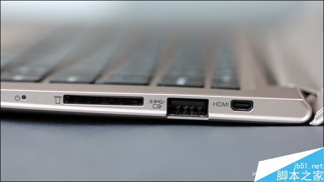 机身右侧依次提供了读卡器、USB3.0和Micro HDMI。其中HDMI没有采用标准接口,没有加入最新的USB Type-C接口略有遗憾(需要转接器才能直接使用普通的HDMI线)