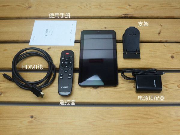 主要的配件则包括了HDMI线、遥控器、电源适配器以及一个平板支架。