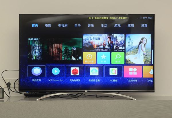 在连接上电视后,品胜掌上视屏会切换到Pad模式,整体界面与一般的盒子界面区别不大,版块的划分也很清晰。