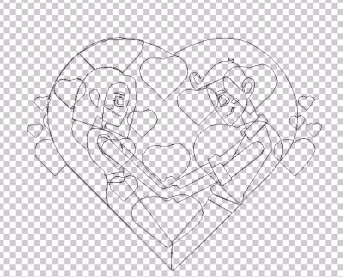 2、继续使用钢笔工具把男女主人公都绘制出来,他们的轮廓在心形当中并与心形轮廓相适应。