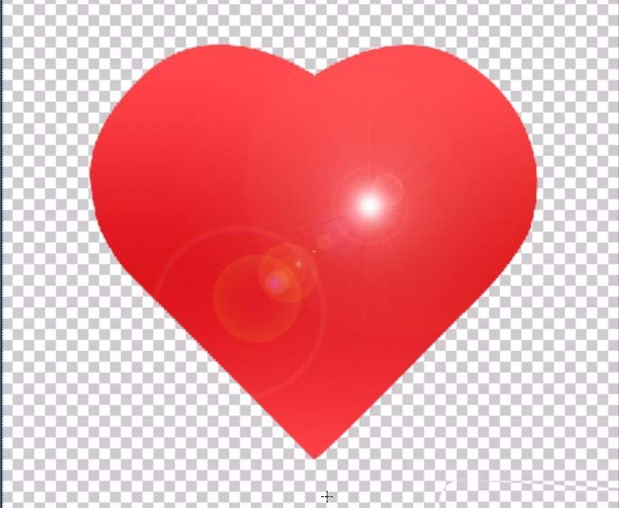 3、设置一个红色的渐变,我们填充这个最大的心形,再做一个镜头光晕,让心形更加的立体化。设置前景色为淡粉色,我们填充这个大心形周围的小心形。