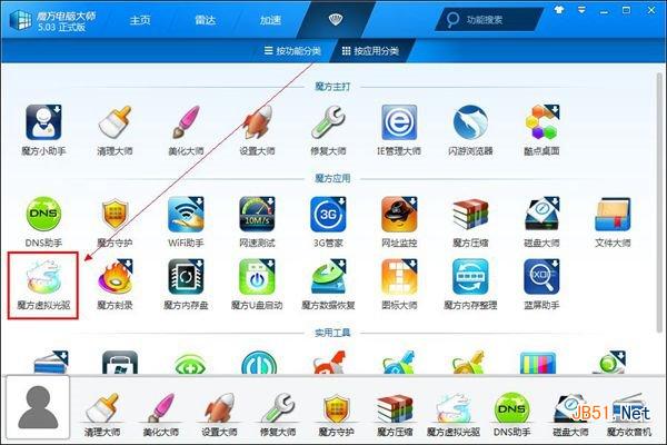 魔方虚拟光驱的应用十分简单,安装上述魔方电脑大师(虚拟光驱版)后,直接可以在魔方电脑大师功能大全里面,查看到魔方虚拟光驱,然后点击就可以打开该软件。