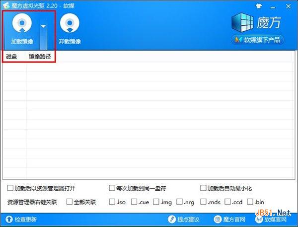 2、在魔方虚拟光驱中,点击加载镜像,就可以像使用光盘一样使用虚拟光驱了。如下图所示,魔方虚拟光驱支持.iso\.cue\.img\.mds等格式的镜像文件。