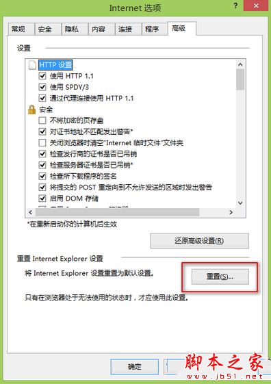 1、重置IE浏览器:打开Internet选项,在“高级”选项卡中,点击“重置”按钮来重置IE浏览器;