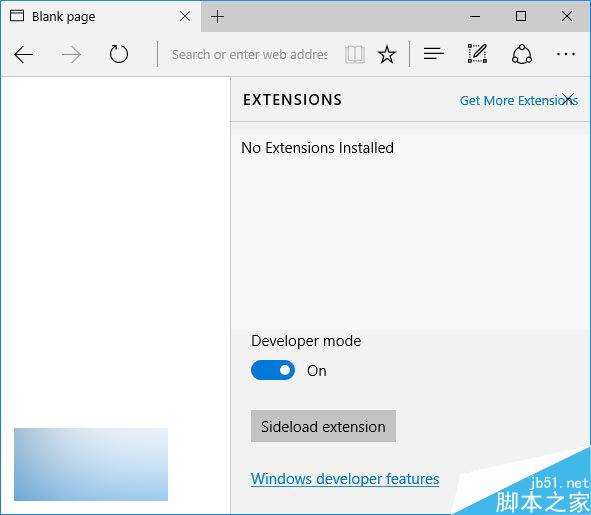这里提供了获取扩展、开启开发者模式以及旁加载扩展功能。不过网友尝试安装此前泄露的两个扩展时,发现还不起作用。我们期待下一个预览版微软能够开放该功能的测试。