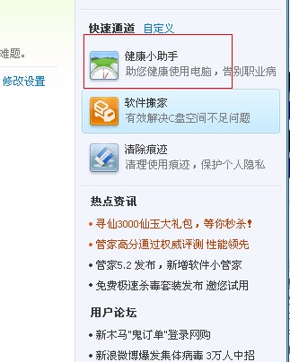1、最近的一种方法就是最近才发现的,如果你电脑上安装了qq电脑管家的话,可以直接设置的,具体的方法是打开电脑管家程序,在右面能看到一个健康小助手的按钮,点击