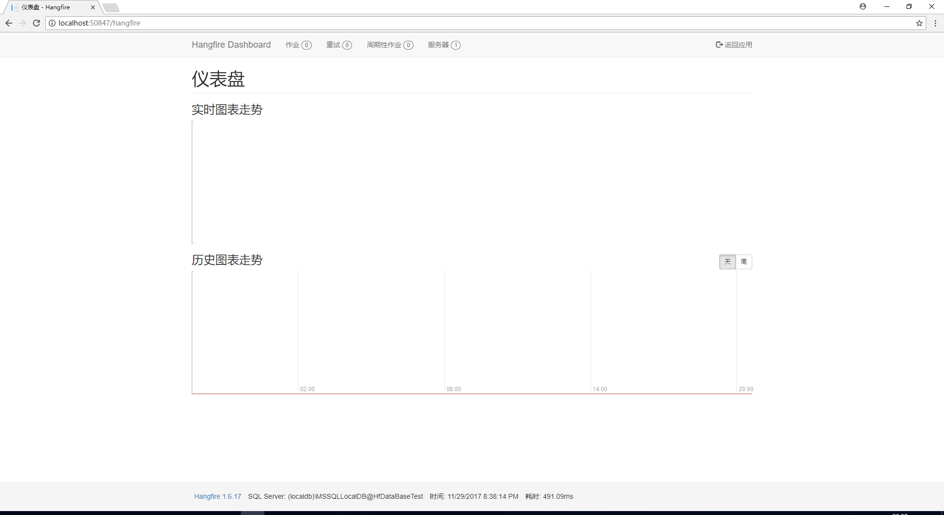 我们打开如下地址,可以看到hangfire的作业控制面板,现在开没有任何作业