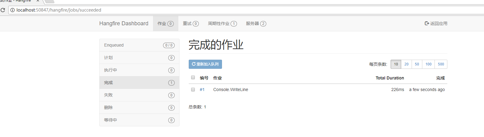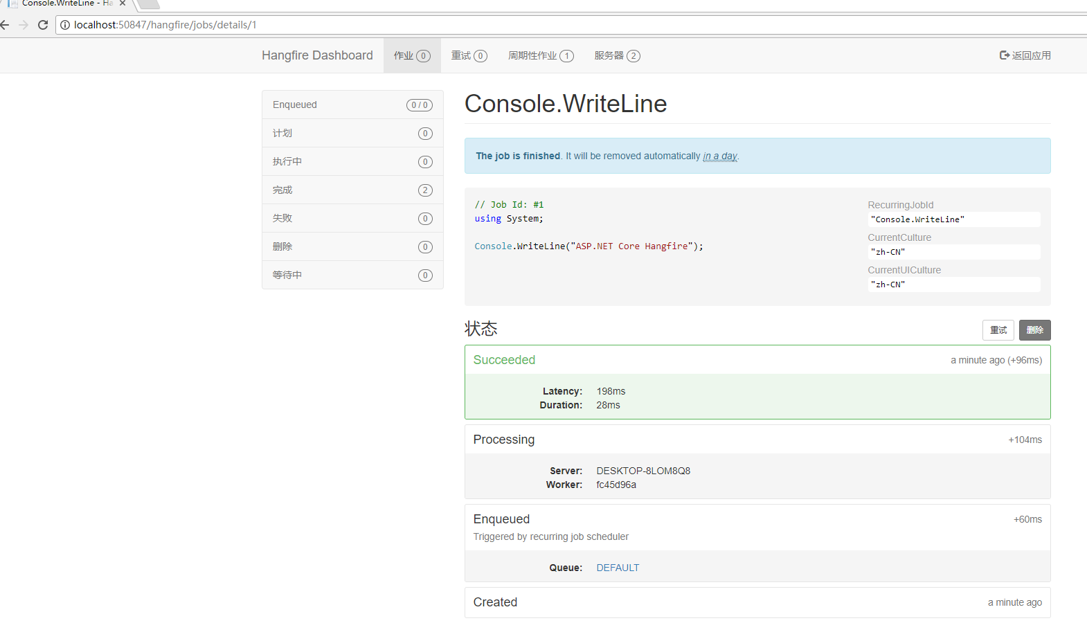 以上就是谨慎太阳最近收集整理的关于Hangfire在ASP.NET CORE中的简单实现方法的全部内容,更多相关Hangfire在ASP.NET内容请搜索靠谱客的其他文章。