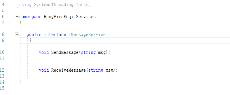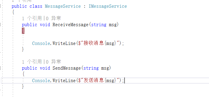 再次修改代码,假设现在有2个任务,发送跟接收消息,那么写一个接口IMessage,Message实现该接口