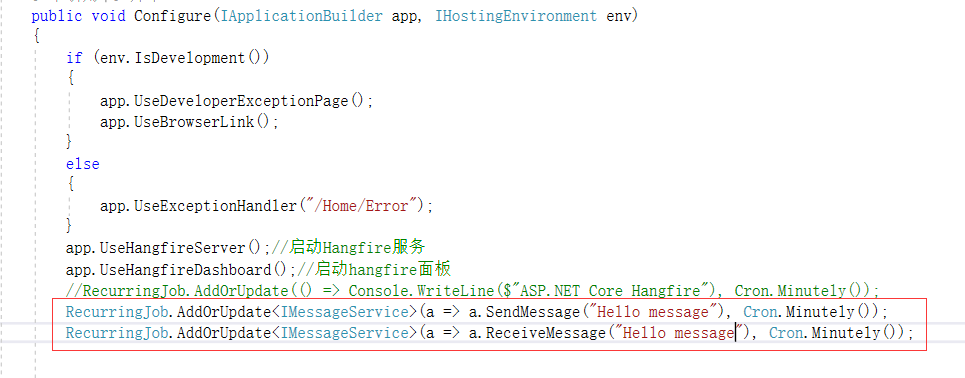 hangfire的任务需要数据库持久化,我们在Startup类中修改ConfigureServices