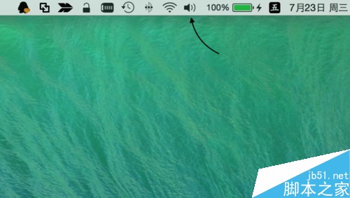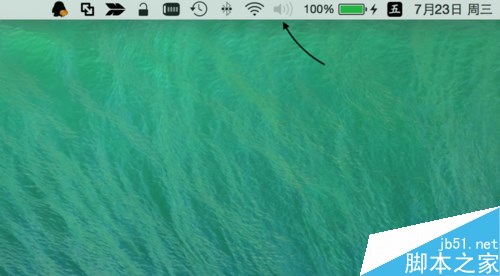 当苹果 Mac 电脑没有声音的时候,这时在屏幕顶部菜单栏中的喇叭会显示为灰色不要用状态,如图所示