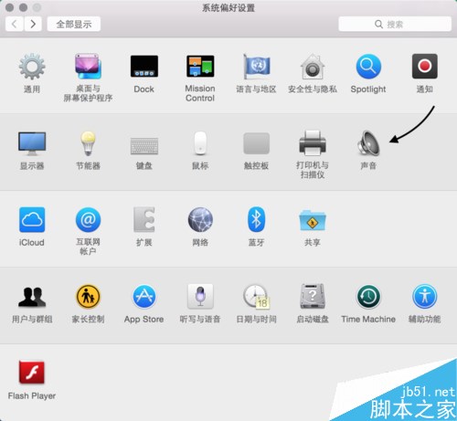 在系统偏好设置中点击打开“声音”选项,如图所示