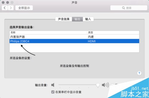 此时我们应该把声音输入选择为 Mac 电脑内置扬声器,这样就会有声音了。