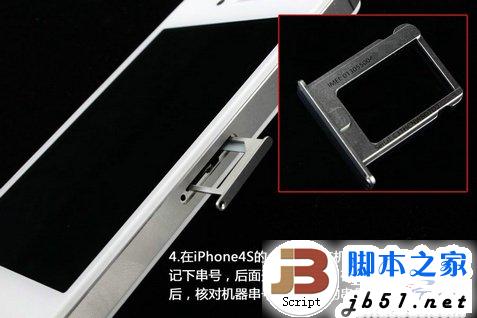在开箱后,查看耳机接口是否有划痕或者插拔过的痕迹,看机器背面摄像头是否有磨损,检查机器顶部的数据接口是否有插数据线的划痕,螺丝是否有拧过的痕迹。 另外,在iPhone4s的卡托上会有机器的IMEI码,用户记下串号,后面开机检查时,在拨号界面输入*#06#后,核对机器的串号和卡托上的串号是否 一致。