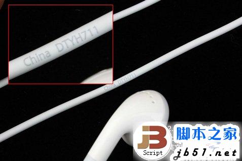 iPhone4s 的原装数据线上印有中国制造的英文字样,原装耳机上也同样印有中国制造的英文字样。iPhone4s的取卡器同样可以辨别真假,其中,假的取卡器上面经常能看到一个凹点,而真的并没有凹点。此外,真的取卡器侧面印有TAIWAN或者CHINA字样,要仔细查看。