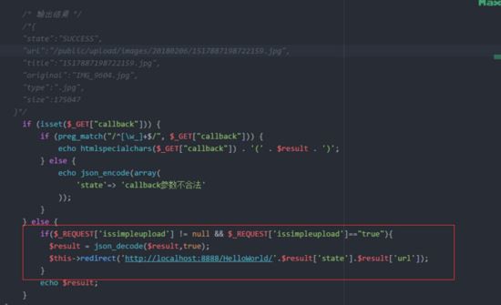 1、把UEditor的PHP版本下载下来,里面的PHP文件夹下的文件复制到项目中,在Controller中的输出结果中添加判断,单图片不直接返回结果