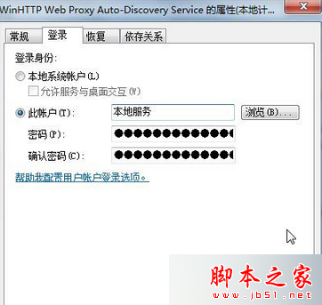 2、在服务窗口双击打开“WinHTTP Web Proxy Auto-Discovery Service”服务,切换到“登录”选项卡,改为本地服务,密码和确认密码全部为空,点确定;